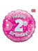 Pink age 2 holographic standard round foil balloon measuring 18" (45.7 cm) when inflated. Made in UK.
