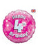 Pink age 4 holographic standard round foil balloon measuring 18" (45.7 cm) when inflated. Made in UK.