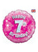 Pink age 7 holographic standard round foil balloon measuring 18" (45.7 cm) when inflated. Made in UK.