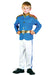 This elegant blue and white Prince dressing up costume comes with striped elasticated trousers, jacket with buttons and epaulets along with a gold belt.