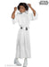 Costume includes long white hooded dress, white belt with silver panels & matching Princess Leia wig with iconic style.