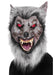 Overhead grey latex werewolf Halloween mask with red eyes.