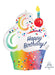 Ombre Happy Birthday cupcake rainbow design large balloon measuring 68 cm x 50 cm (27 in x 20 in) when inflated.