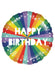 Multi-coloured 17" round Happy Birthday foil balloon.