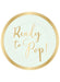 Pack of 8 mint and gold Ready to Pop! gender reveal or baby shower paper party plates with gold metallic trim.
