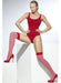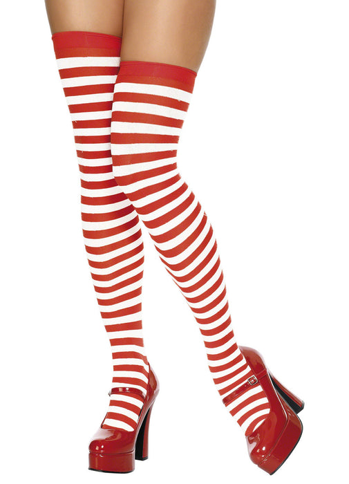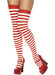 Perfect for finishing off your Christmas costume are these red and white striped thigh high stockings.