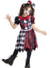 Red and black patterned Halloween jester dress with clubs design along with headband.