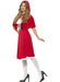 Red Riding Hood fancy dress costume consisting of long red dress with black corset and white trim. Also included is the mini red hooded cape with tie up lace.