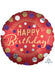 18 inch round red and gold satin effect Happy Birthday foil balloon.