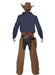 Wild West rodeo cowboy costume with shirt, chaps and brown cowboy hat.