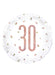 Rose Gold Glitz 30th Birthday 18" circle shaped helium balloon printed both sides.