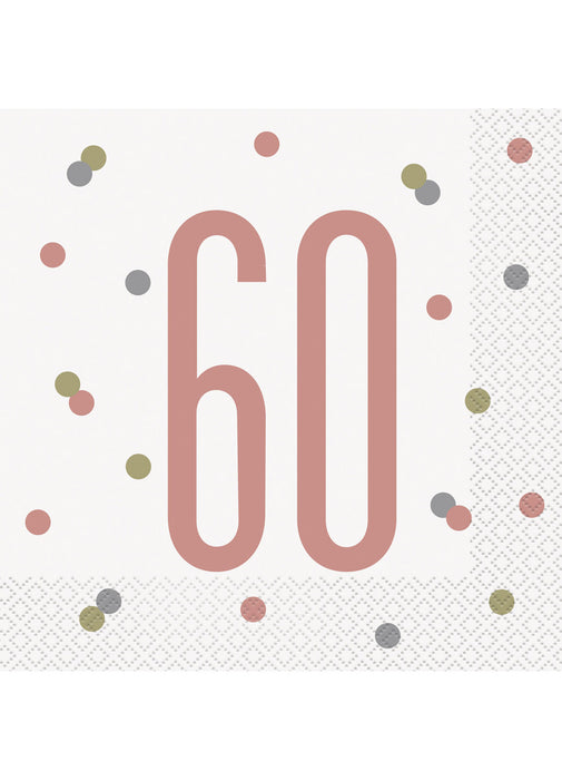 Click to expand Tap to zoom Rose Gold Glitz Age 60 Birthday Napkins Save £-1.99 £1.99 SKU U84885 1 2 3 4 5 6 7 8 9 10+ Quantity Quantity ADD TO BASKET Pack of 16 luncheon 60th Birthday Rose Gold Glitz napkins. 2 ply. 33 x 33cm.