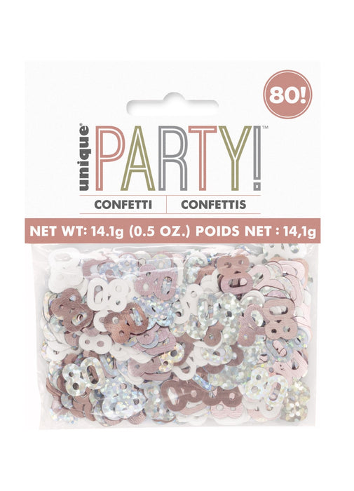Click to expand Tap to zoom Rose Gold Glitz Age 80 Confetti Save £-1.25 £1.25 SKU U81978 1 2 3 4 5 6 7 8 9 10+ Quantity Quantity ADD TO BASKET 14.1g (0.5oz) pack of rose gold glitz 80th birthday party confetti.
