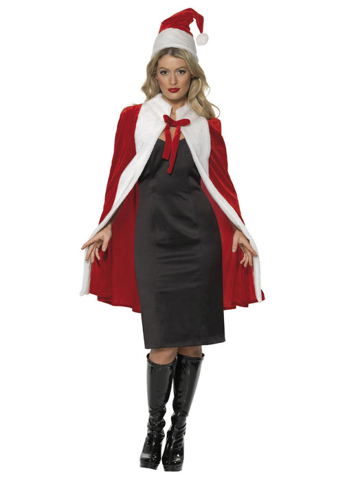 Red and white Santa cape with tie and matching hat. Ho ho ho!!!!
