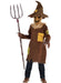 5 piece Halloween scarecrow costume with scary mask, pointed hat, patched woven tunic and pair of gloves.