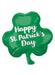 Metallic green Irish themed shamrock shaped foil balloon with Happy St Patrick's Day text measuring 18 in (45 cm) high when inflated.