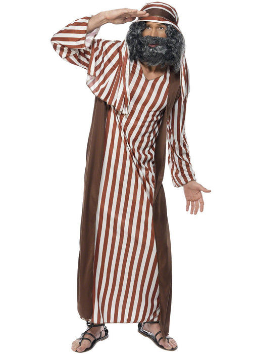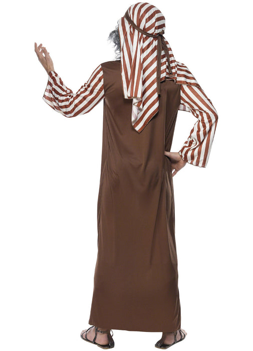This Shepherd fancy dress costume costume includes a brown and white robe and a matching headpiece.