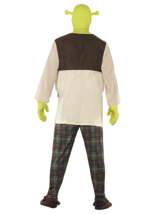 Official licensed Shrek costume from Shrek Forever After which includes padded out beige top with green collar, attached brown waistcoat, belt and tartan trousers.