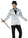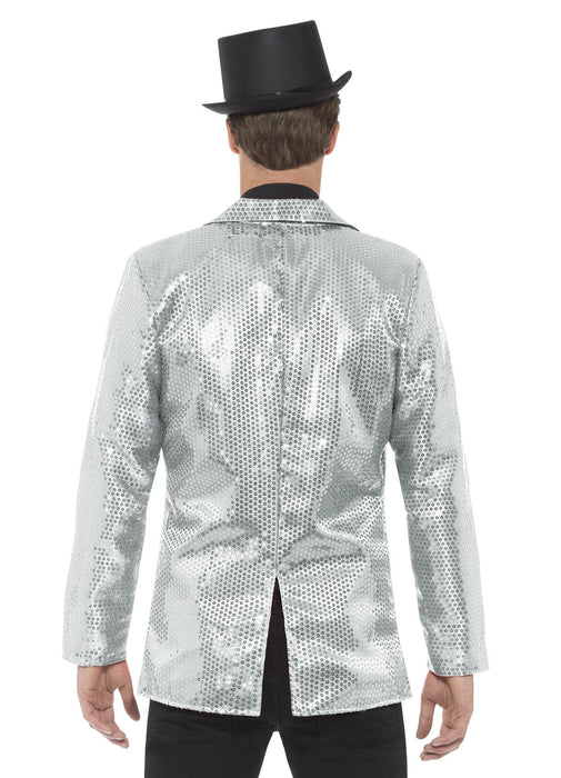 Men's jacket finished all over with silver sequins. Jacket has faux pockets but can be undone as the buttons on it are real.