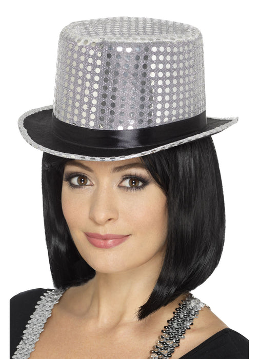 Click to expand Tap to zoom Silver Sequin Top Hat Save £-6.99 £6.99 SKU SM48262 1 2 3 4 5 6 7 8 9 10+ Quantity Quantity ADD TO BASKET Unisex silver sequin top hat with black band.