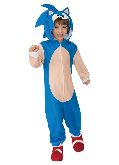 Officially licensed Sonic costume which includes hooded character jumpsuit with shoe covers.