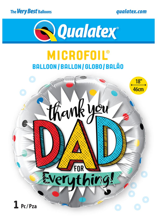 Round "Thank You Dad for Everything" message foil balloon measuring 18" (46 cm).