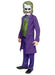 Officially licensed The Joker Halloween costume with purple jacket with attached vest, striped trousers and plastic face mask.