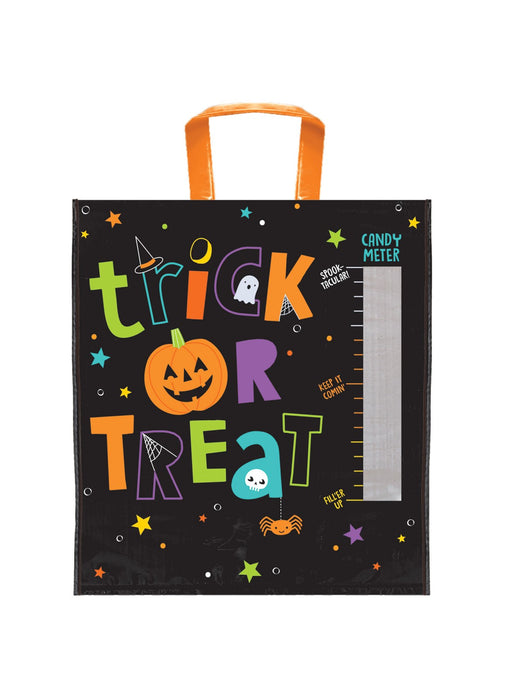 Halloween themed trick or treat plastic bag with transparent candy meter strip to keep track of all your candy!