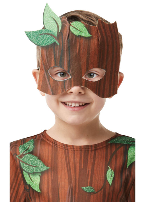 Child's Twig Boy costume consisting of printed jumpsuit with elastic face mask.