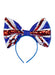 Jumbo glitter sequin Union Jack flag design bow on a headband.