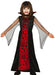 Child's vampire countess Halloween 2-piece costume wit long red and black dress with lace and sequin finish along with collar neckpiece.