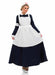 The Victorian Nurse costume adult consisting of long navy dress with attached first aid arm band and hoop insert, white apron and first aid hat with two hair pins to hold secure.