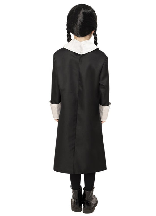 Officially licensed Adams Family 2 Wednesday character costume with dress and black plaited wig.
