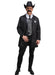 Wild West cowboy sheriff fancy dress costume with black coat with attached badge, mock leather waiscoat, faux shirt front and tie.