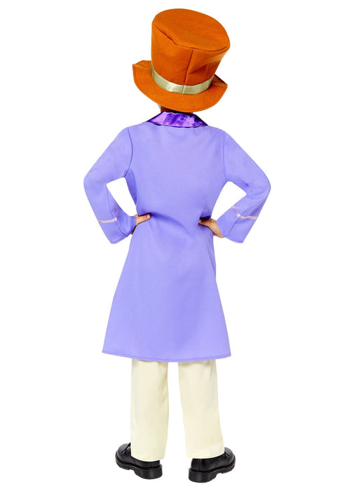 Willy Wonka and the Chocolate Factory licensed costume consisting of 3/4 length jacket with attached vest and bow tie along with character top hat.