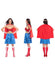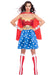 5-piece licensed adult's DC Wonder Woman fancy dress costume with character dress, cape, arm cuffs, leg warmers and headpiece.