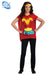 Official Licensed Wonder Woman set adult consisting of red t-shirt with printed logo and chest design, red cape and gold headband.
