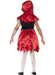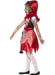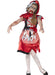 Child's Zombie Miss Hood fancy dress costume consisting of long red torn dress with attached red and white checked apron decorated with blood stain design. Also included is the red torn hooded cape.